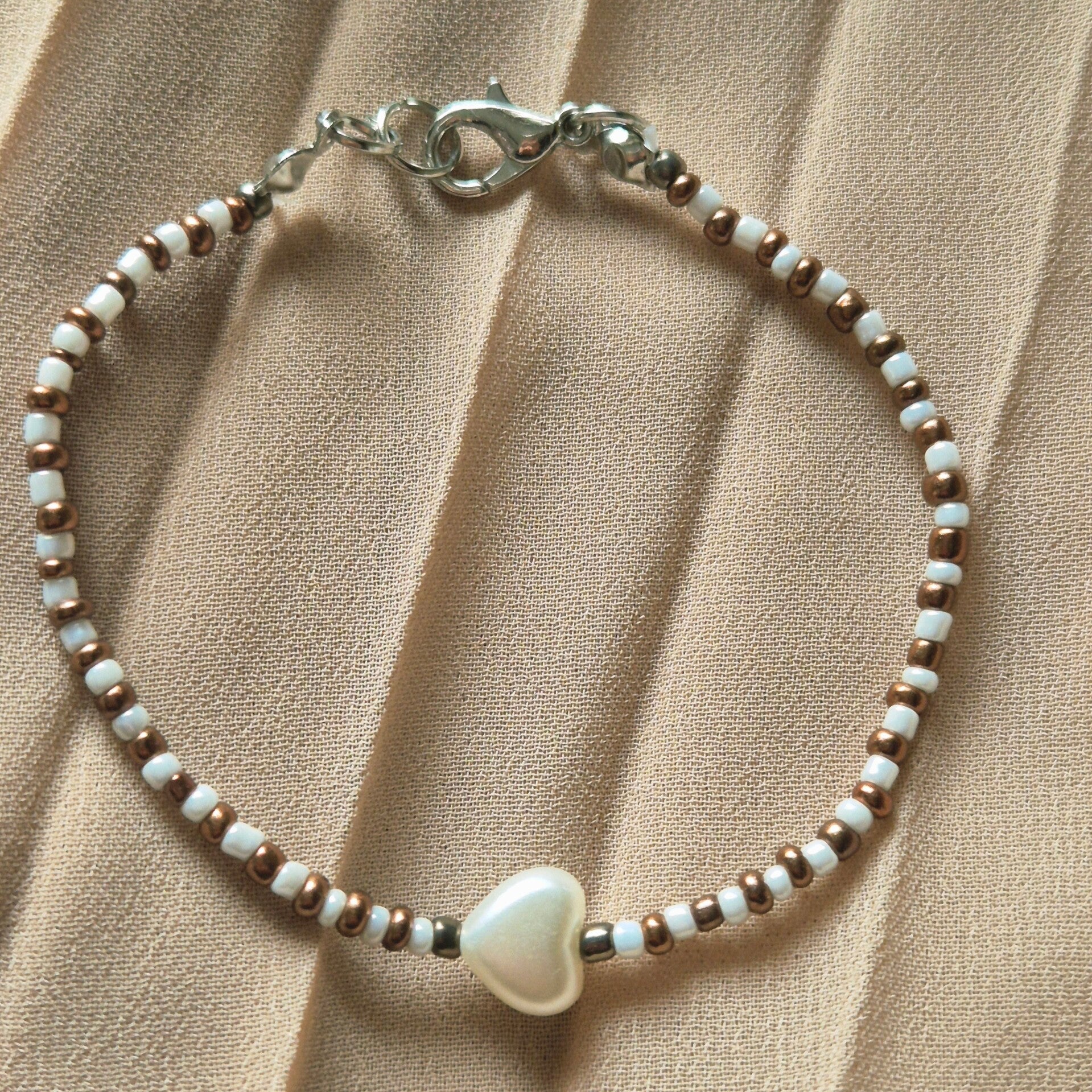 Minimalistisch bruine kralen armband met een hartje parel in het midden. Een perfecte accesoire om te dragen in de herfst en winter seizoenen.