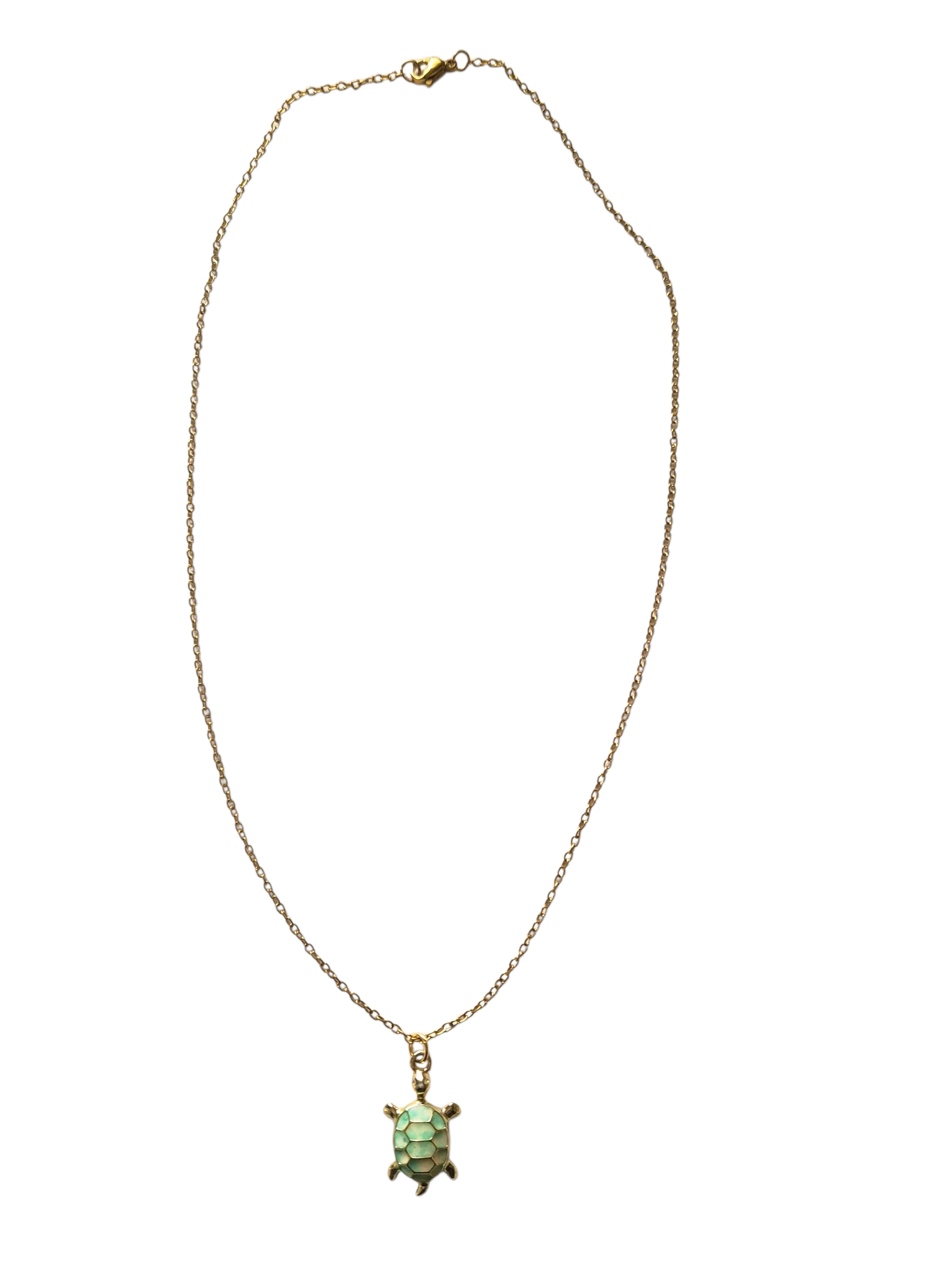 Gouden en minimalistische ketting met een zeeschildpad.Schildpadden staan symbool voor een lang leven en geduld.