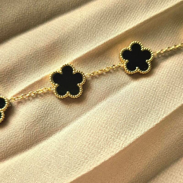 Minimalistische gouden klaver armband in de kleur zwart , een luxe toevoeging aan je armbanden collectie .