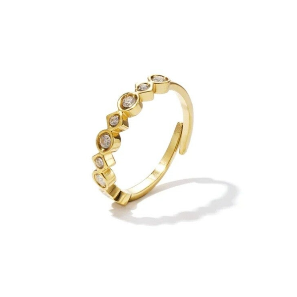 Gouden ring met verschillende kleine zilveren diamantjes in verschillende vormen. RICH GIRL VIBES.